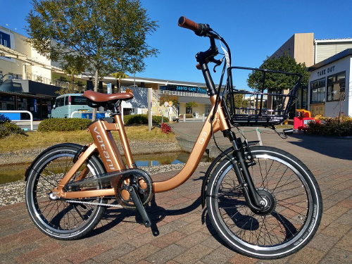 オシャレなデザインと色使いが人気の電動アシスト車。