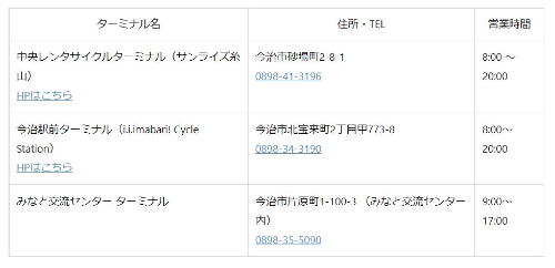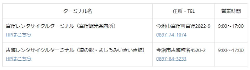 ■今治市の主要部のレンタサイクルターミナル
