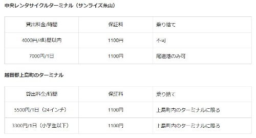 ■レンタサイクル料金詳細