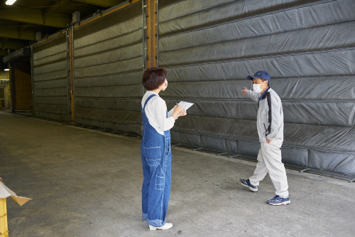 脱渋をしている作業場に到着! 入口には「農林水産大臣賞受賞 JAにしうわ富士柿部会」と書かれた看板が。