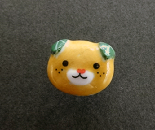 愛媛県のイメージアップキャラクター「みきゃん」の砥部焼製ピンバッチです。