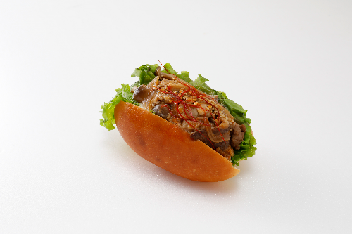 大人気のコッペサンドから、秋の新作が登場! ピリ辛のサムジャンのタレをつけた焼肉と、レタス、しめじをサンド。思いっきりかぶりつきたいご馳走パンです!