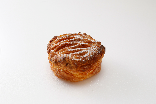シャキシャキとした食感の大きな煮りんごをパイ生地で包んで焼いたデザートパン。ラムレーズンとクリームチーズ入りのカスタードで、ちょっぴり大人の味わいに仕上げているそうです。