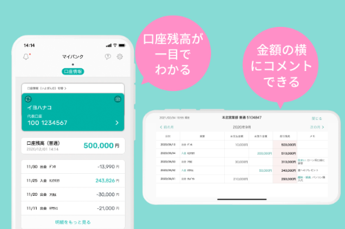 【マネマネ体験1】 口座情報が一目瞭然!取引明細画面は検索やメモ欄が便利