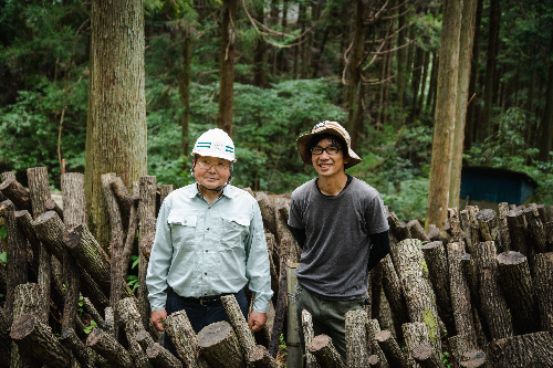 大洲市森林組合の組合長として働く父・中野孝廣さんと、2021年春に乾しいたけの栽培に加わった元料理人で地域おこし協力隊の経験もある息子・芳将さん。2人で3ヘクタールにもなる土地を管理し、日々乾しいたけの生産と普及に尽力している。
