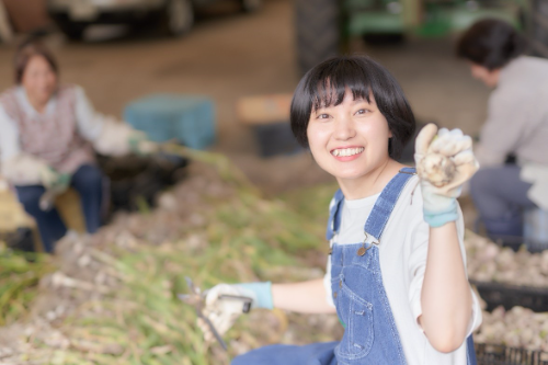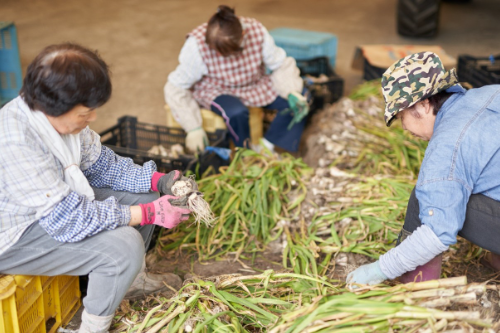 私ももっと生にんにくに触れたいです!ということで、にんにくの収穫後の作業を体験させてもらいました。