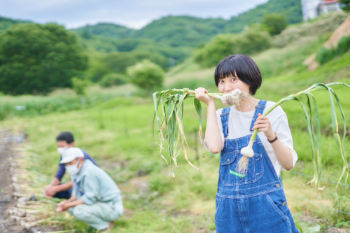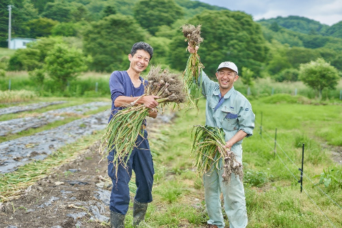 大野ヶ原で生にんにく栽培をしている吉井さんと有間さんに教えてもらいました!
