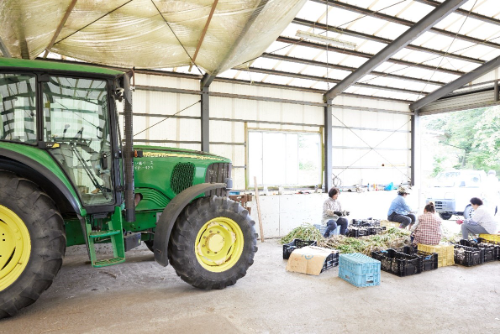 教えてくれたのは、作業場の中で葉と根っこの摘み取り作業をするみなさん。