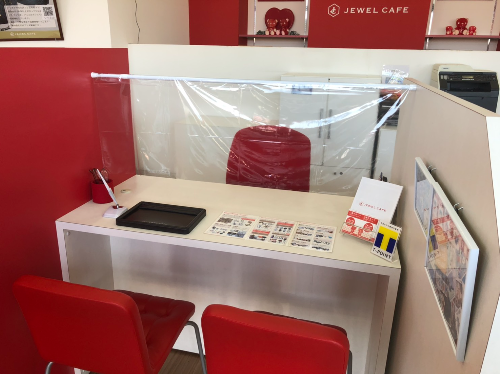 ジュエルカフェはお客様のプライバシーを確保した受付ブースにゆったりと寛いで頂ける空間をご提供しております。