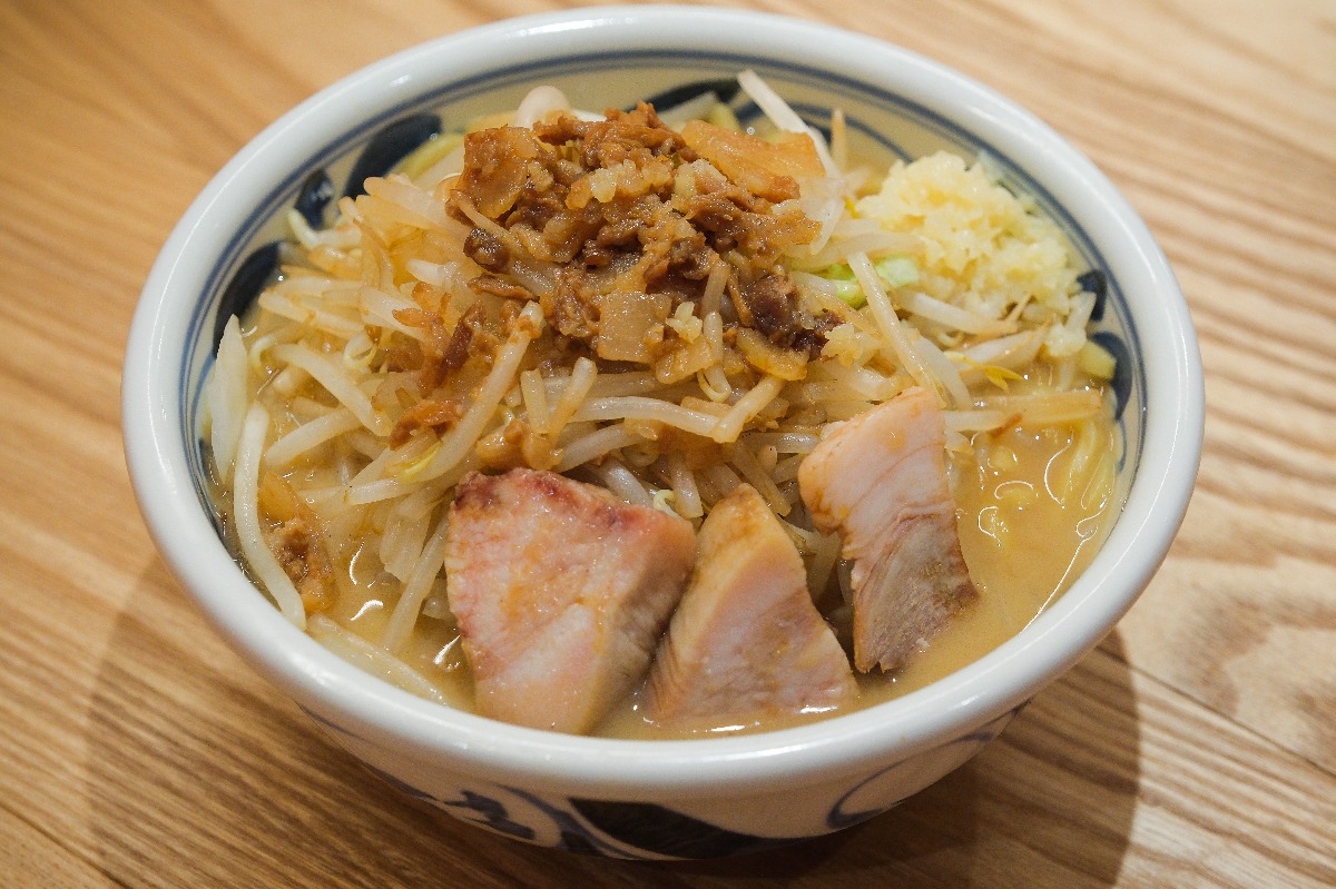 スタッフのイチオシは大きく切られたチャーシューと太麺が満足感の高い「二郎系ラーメン」。現在、セットメニューは17時からのみ販売中。