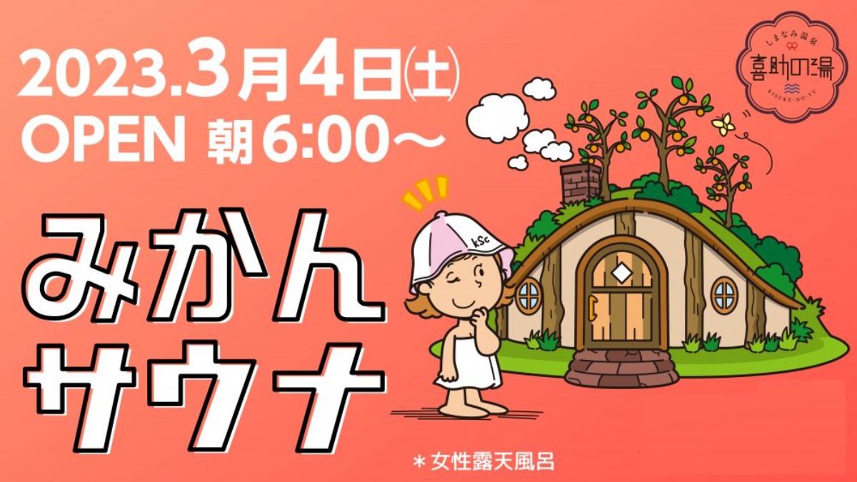 これまで数々の魅力的なサウナ開発・サウナイベントを展開してきたkScのプロデュースにより、女性露天風呂に「みかんサウナ」が「しまなみ温泉 喜助の湯」に登場!