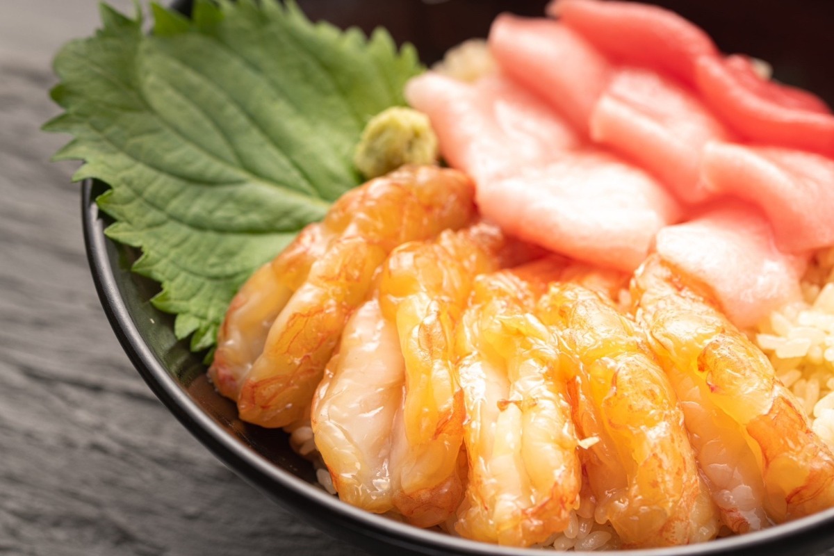 エビとマグロの両方が楽しめる欲張りな一品。味噌汁付き。