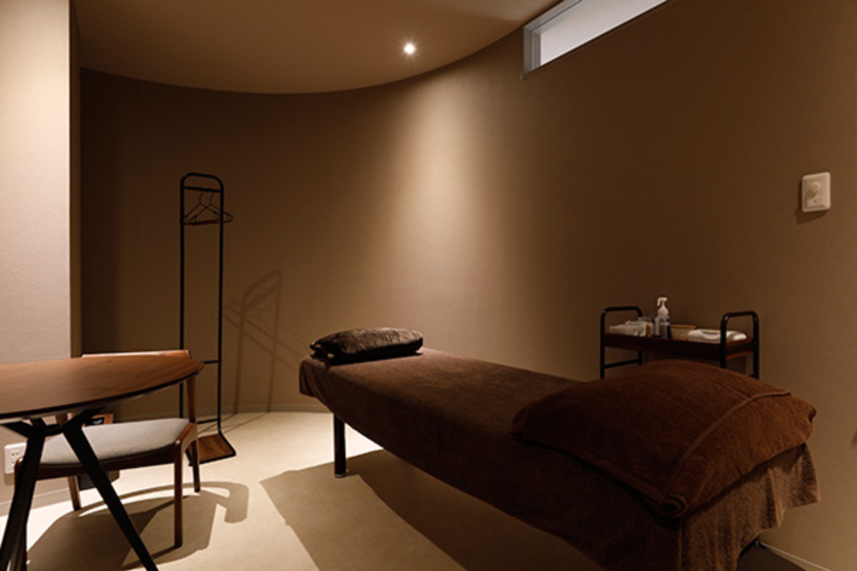完全個室で落ち着きのあるグレージュ カラーの施術室