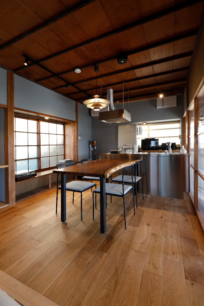 キッチンには調理器具や家電製品が並んでおり、ゆっくりと料理を楽しんで食卓を囲めます。