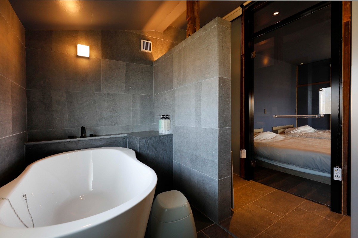 島の町並みと海を見下ろす丘の上に佇む、青色を基調とした古民家宿。一番の魅力は、大きな窓から望む絶好のロケーションです!高級感溢れる小さな宿で島の一日を体感しましょう。