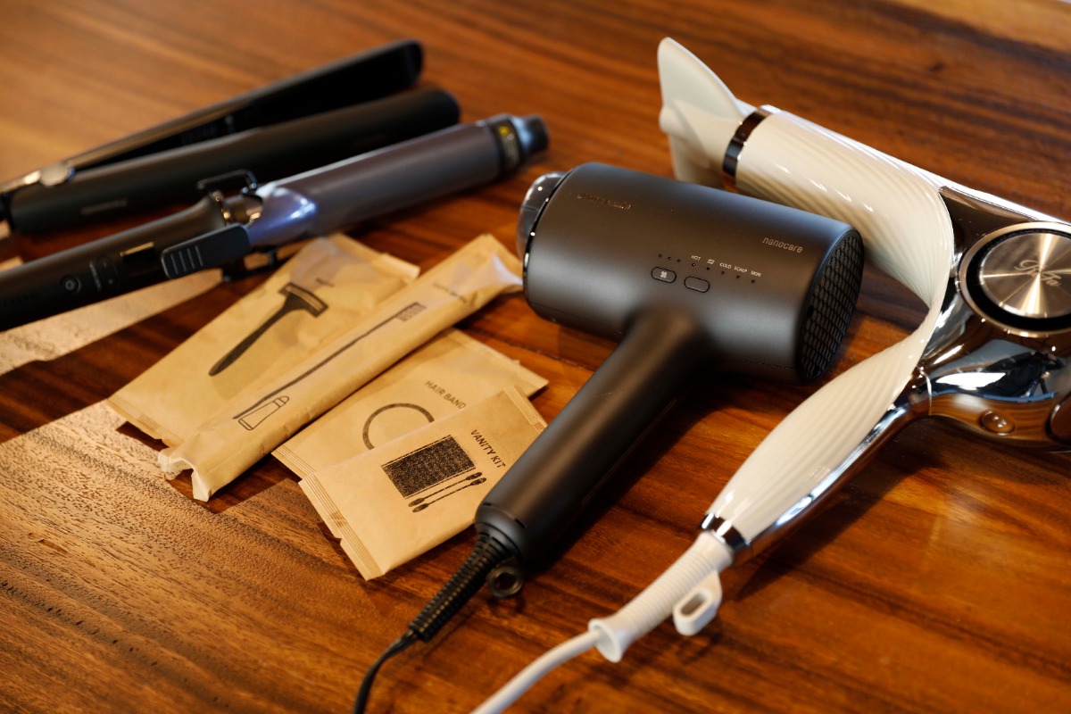 アメニティも豊富に揃っています。ヘアアイロンやドライヤーなど女性が嬉しい設備も!