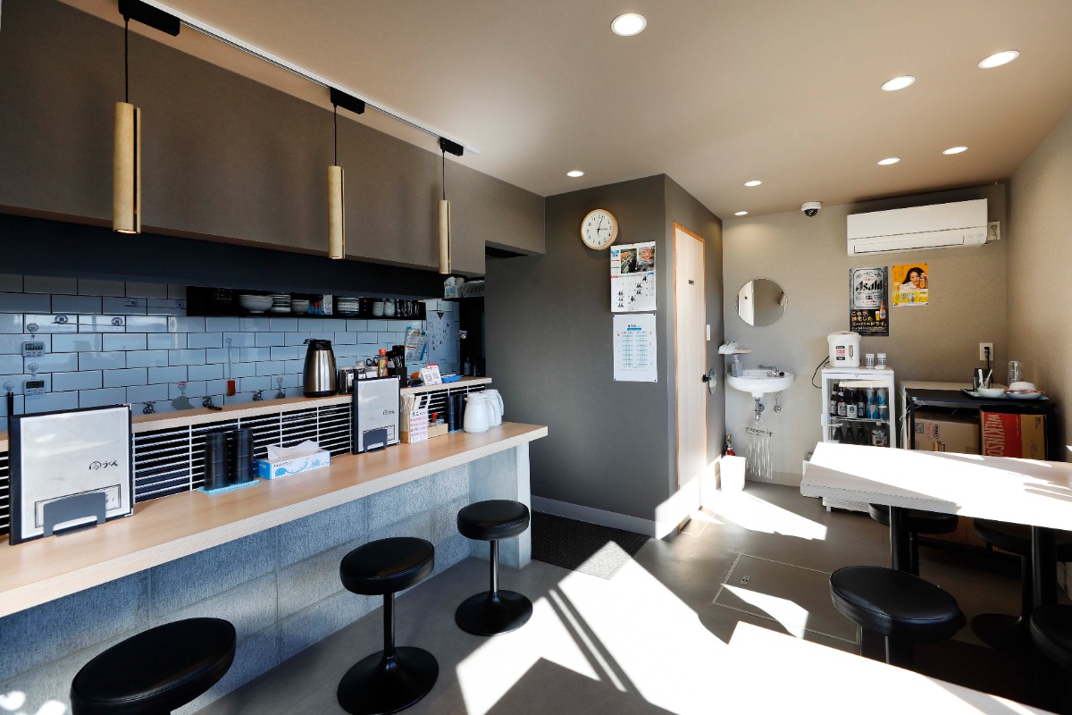 店内にはカウンター席とテーブル席を備えています。目の前に海が広がる絶好のロケーション!
