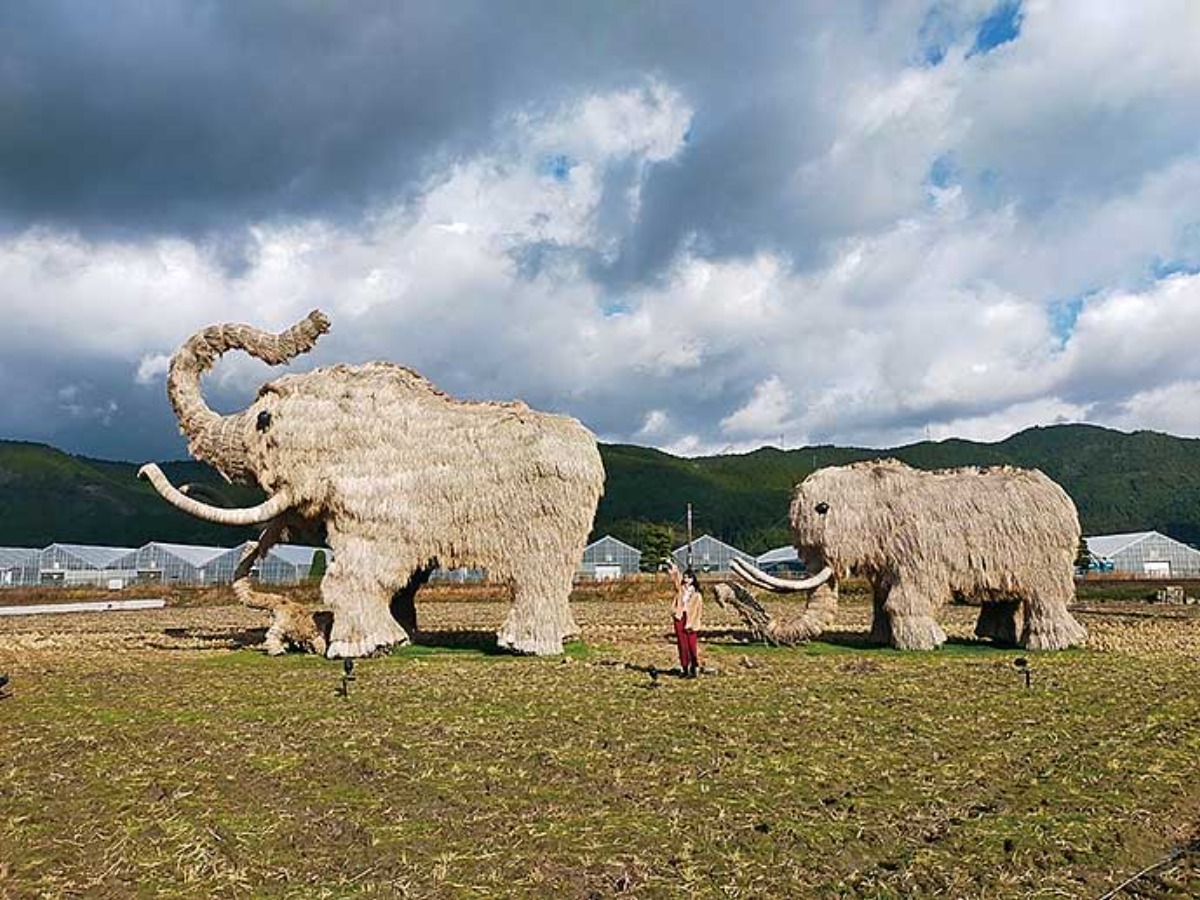 宇和町のシンボルとも言える、わらを使って作られたマンモスアート。その幅は最大10m! 近くで見ると迫力満点です。