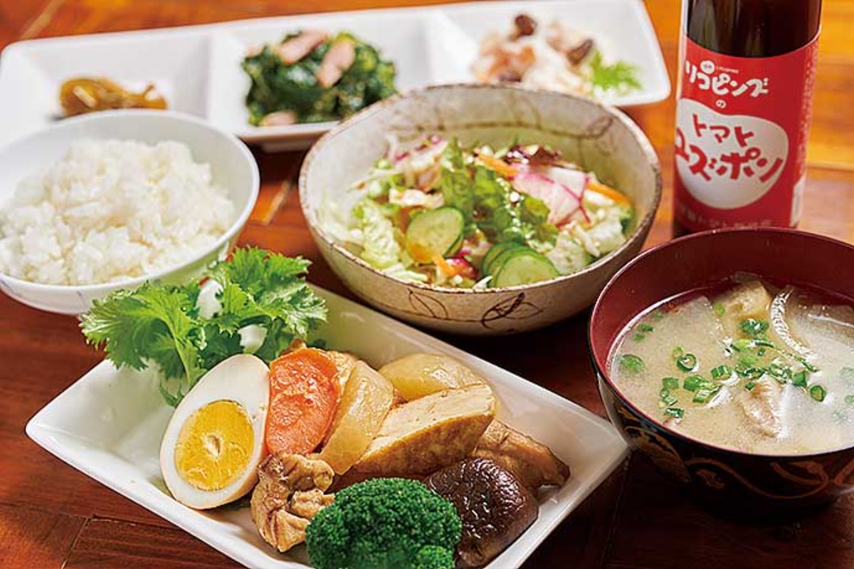 この日食べたのは営業日によっておかずの内容が変わる「リコピンズランチ」。出てくる野菜のほとんどは、リコピンズのみなさんが畑で作っているものだそう。他にも、ケチャップたっぷりのオムライスやスパゲッティナポリタンなどもありました!なんと爽やか、トマトとゆずの香りが広がり、トマト酢のまろやかで深い味わいが五臓六腑に染み渡ります。さっぱりしているので、多めに“追いポン”しても最高! リコピンズのおかあさんたちのエネルギーと、栄養価も高くて美味しい「トマトユズポン」で、心も身体も元気になりましょう!