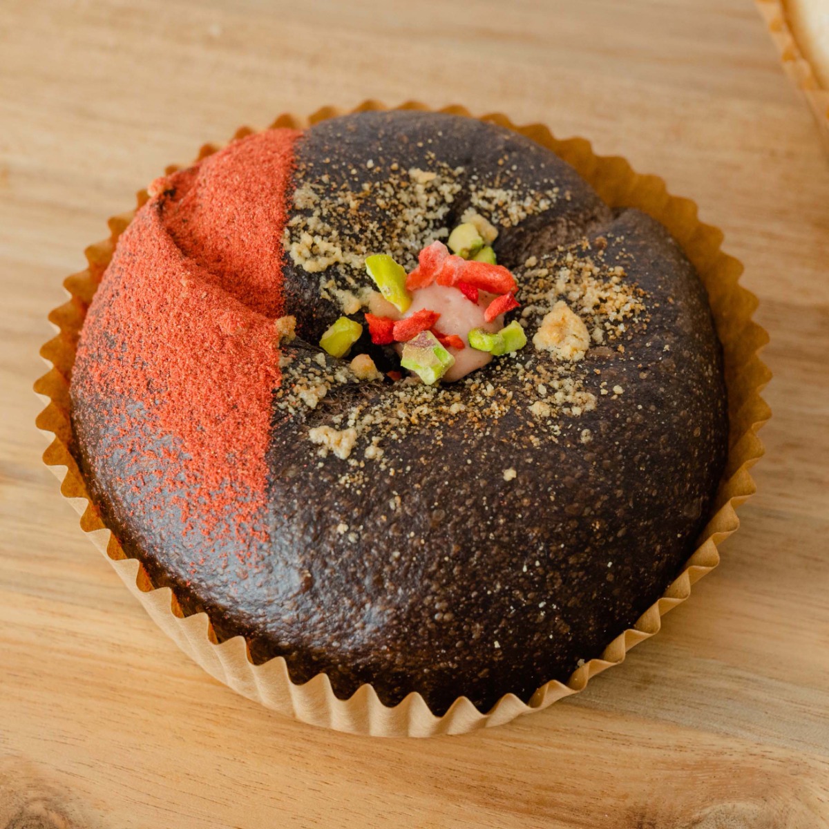 チョコ生地にストロベリーチーズクリームとクランベリー、オレオクッキーを包んだ冬限定商品です。