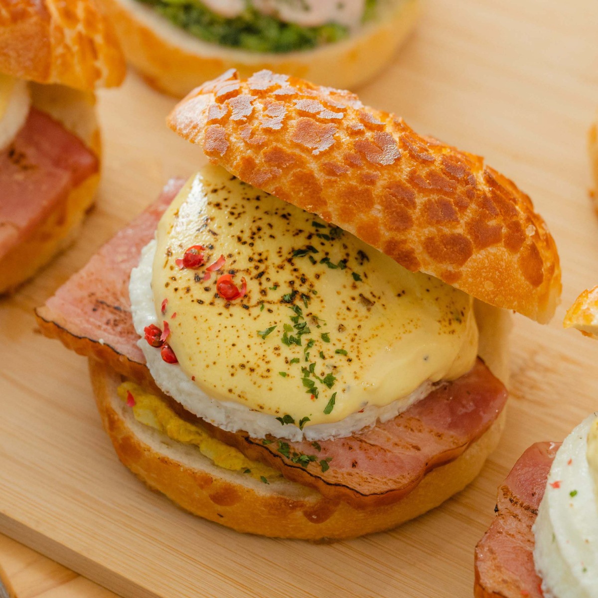 エッグベネディクトは、オランデーズソースを炙り香ばしく仕上げています!