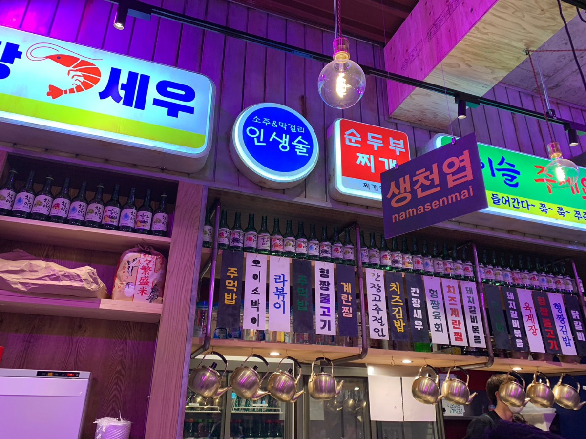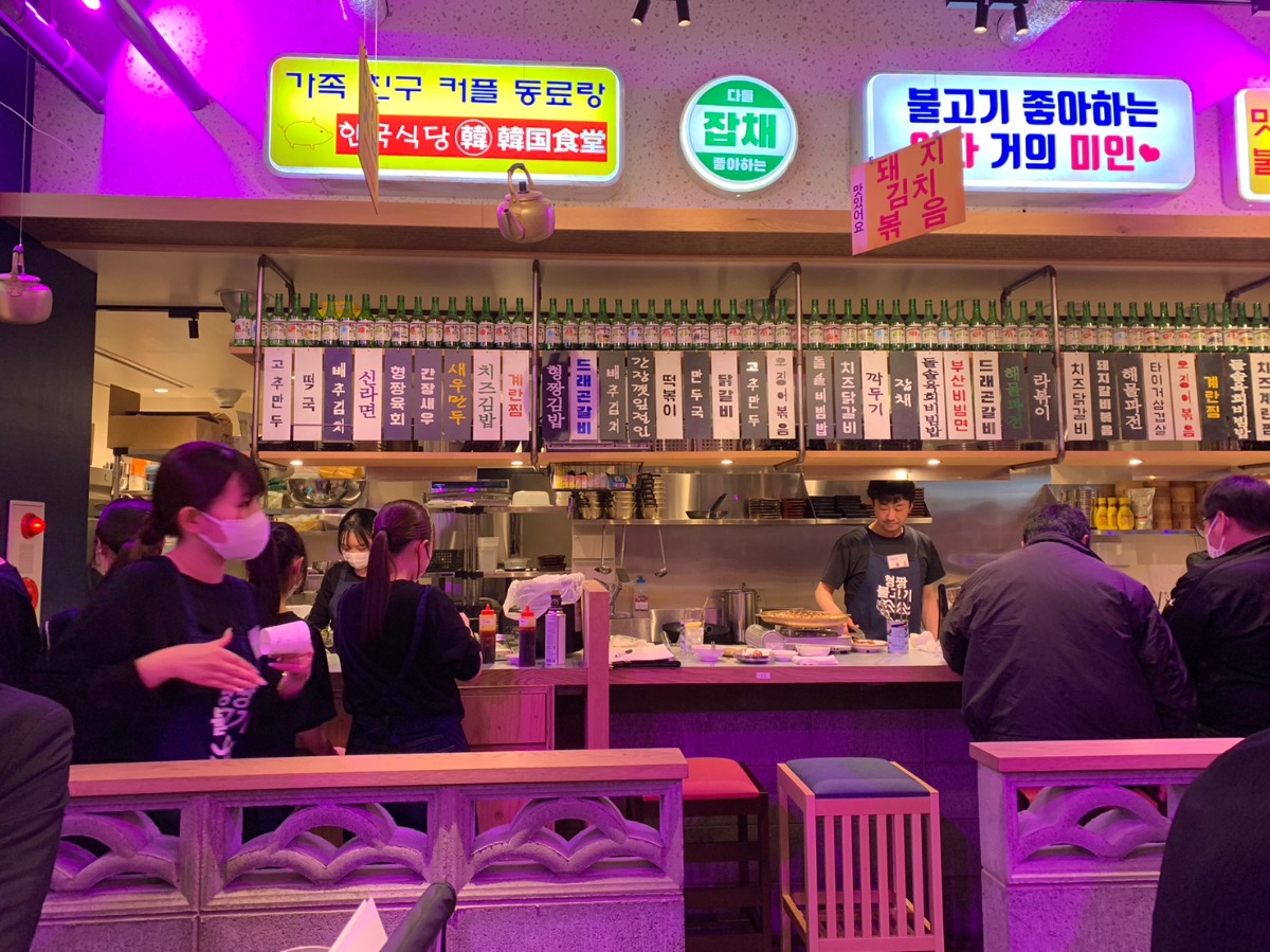 この日もたくさんのお客さんで、店内は大賑わいでした!カウンターの雰囲気も、韓国の屋台に来たみたいでワクワクします!メニュー表は全部日本語なのでご安心ください(笑)