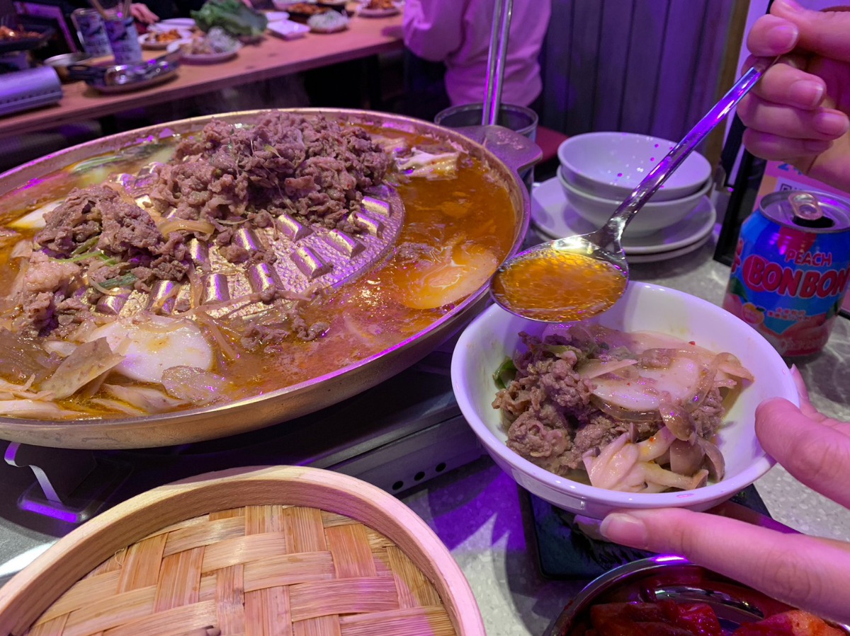 ソウル式のプルコギ専門鍋を使って、甘辛いタレと野菜を一緒に煮込んだ焼肉鍋「プルコギ」がお店の名物です。