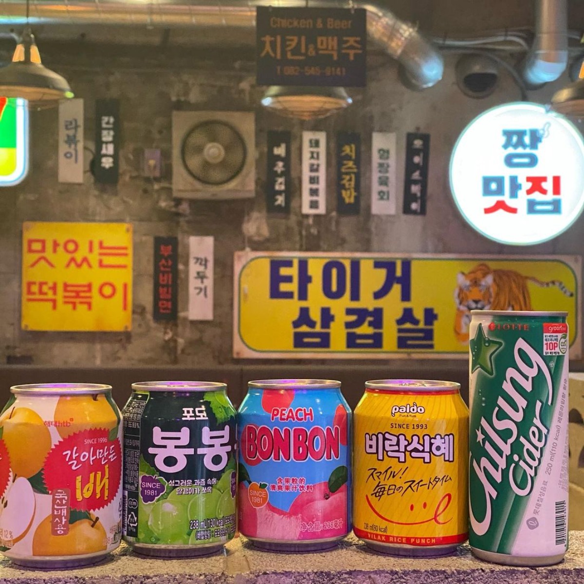 可愛いデザインの缶ジュースも豊富にありますよ!お酒が飲める人も飲めない人も、一緒に楽しめるのが嬉しいですね!