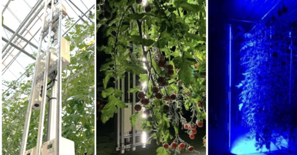 1日1回、夜間に計測し、作物の成長を高精度で把握することができる「画像計測ロボット」。完全自動で動き、作物を見守る。さらに、AIで解析することで果実の成熟度など正確な管理が可能になる。