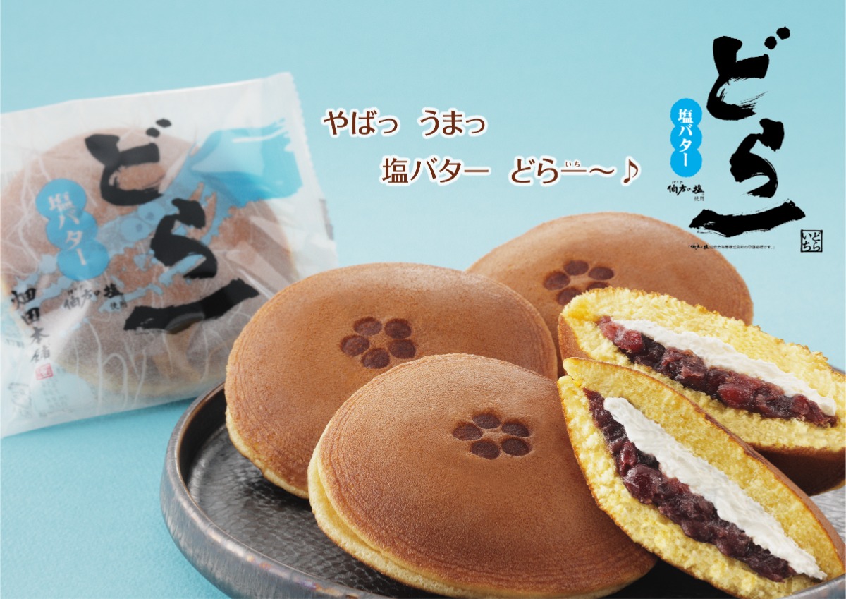 ふんわり焼き上げた生地に、じっくり炊き上げた粒あん、「伯方の塩」が隠し味の塩バタークリームがやみつきになる美味しさの、「ハタダのどら一(いち)塩バター」。今年も5月15日が最終工場出荷日(どら一最後の日)となっているので、今のうちにGETしよう!