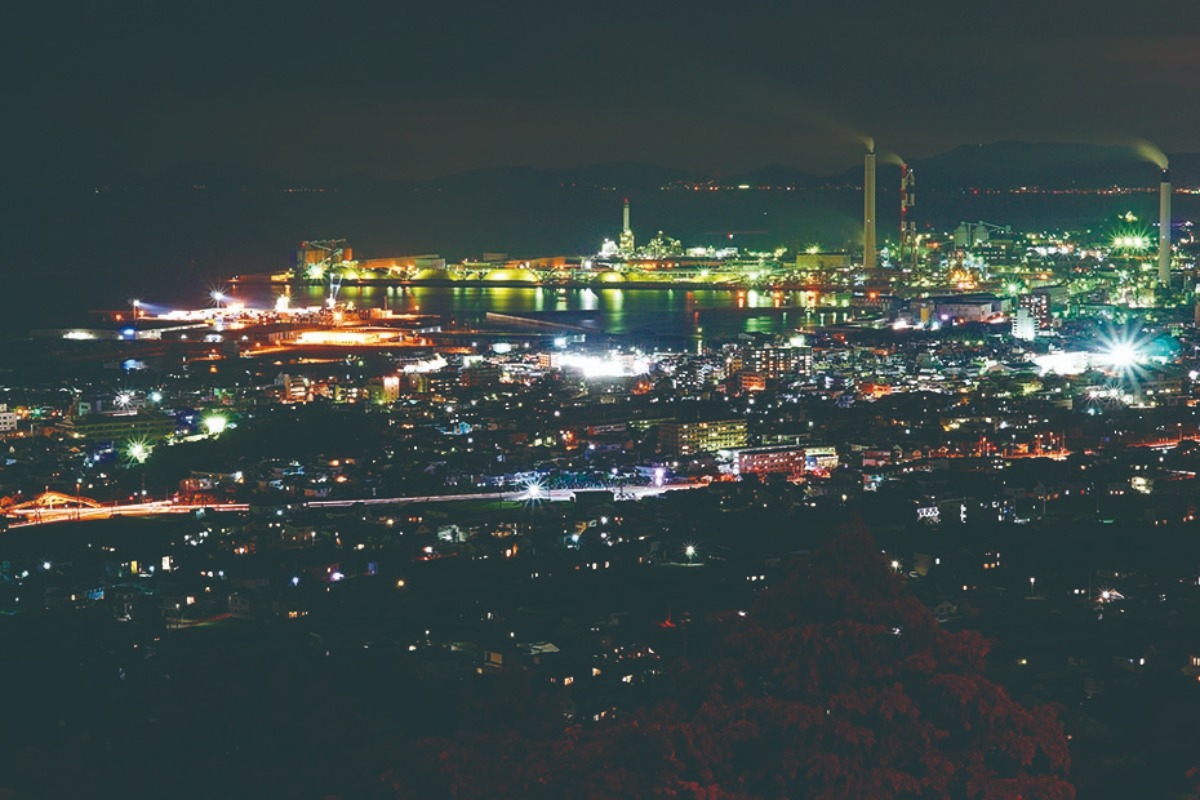 夜の景色はこんな感じ。紙のまち・四国中央市ならではの工場夜景がとても綺麗です。