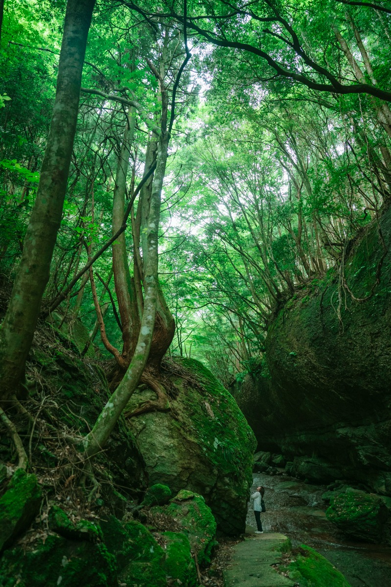 見てください!私の何倍にもある岩がいたるところに転がっているんです。そこから生える大木にもなんだかパワーを感じます。