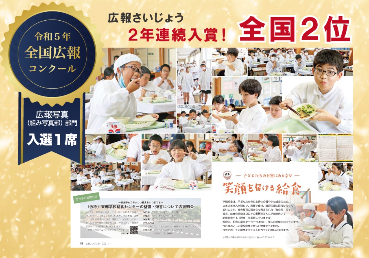 愛媛県広報コンクールで県代表となり、全国広報コンクールに出品していた広報さいじょう 2022年7月号(p02-03)が、組み写真部門で入選1席(特選に次ぐ全国2位)に選ばれました!昨年の広報紙(市部)部門での特選(全国1位)に続き、2年連続での受賞となります。