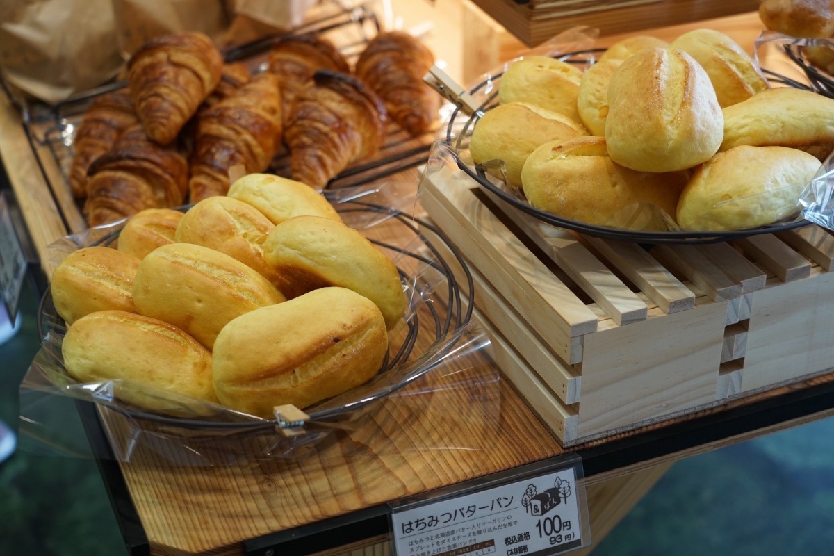 「はちみつバターパン」は、北海道のハチミツを使用し、程よい甘さのあるパン。生地にはチーズが練り込まれ、柔らかさが人気の秘密。