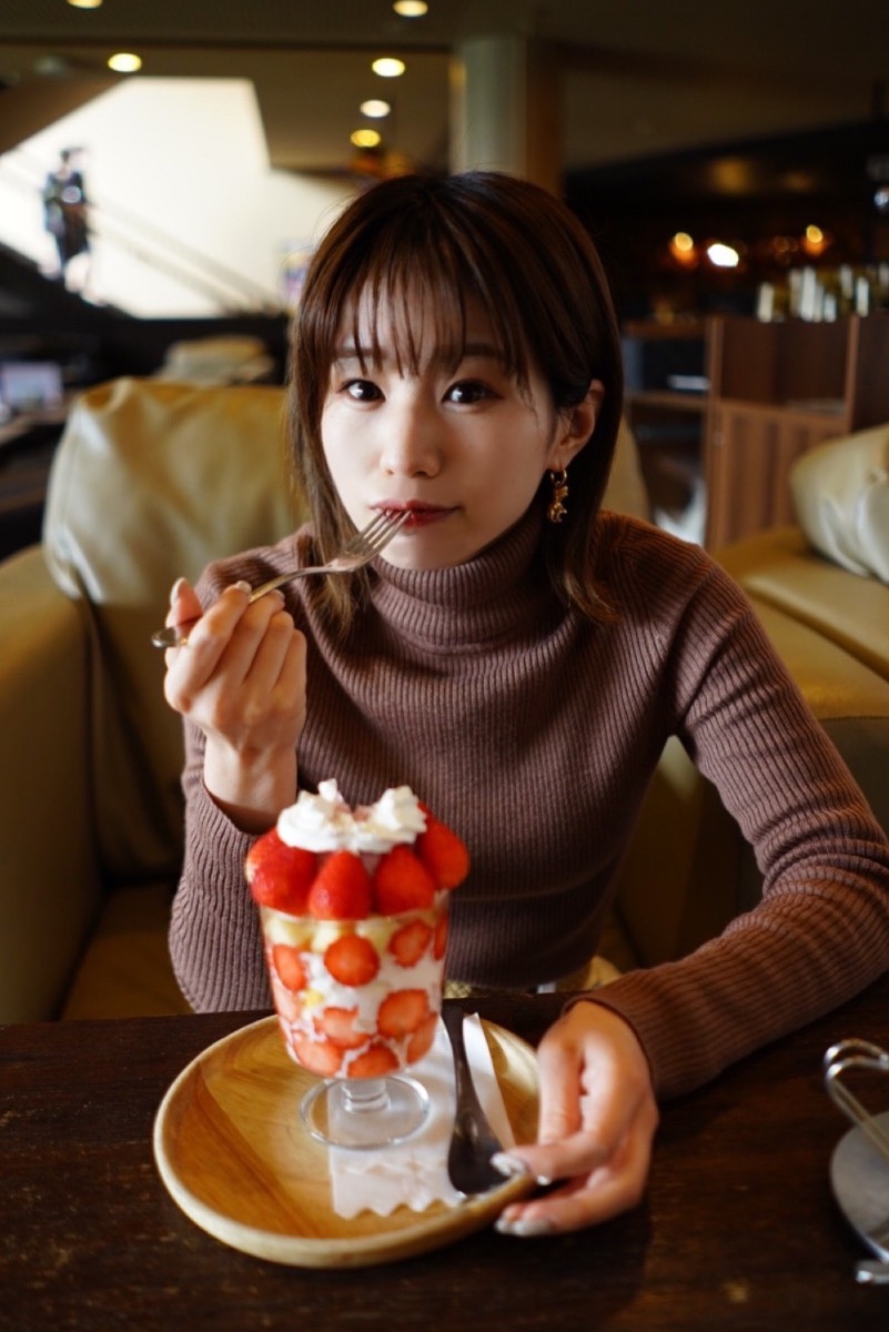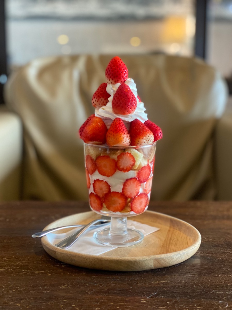 レストランでいただけるご飯やスイーツも絶品!私が今回注文したのは「プレミアムいちごパフェ」(1,500円)です!