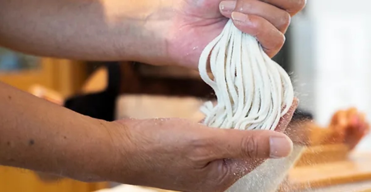 指導員によるそば打ち講習を約1時間程度受けた後、打ったそばをその場で試食できます!