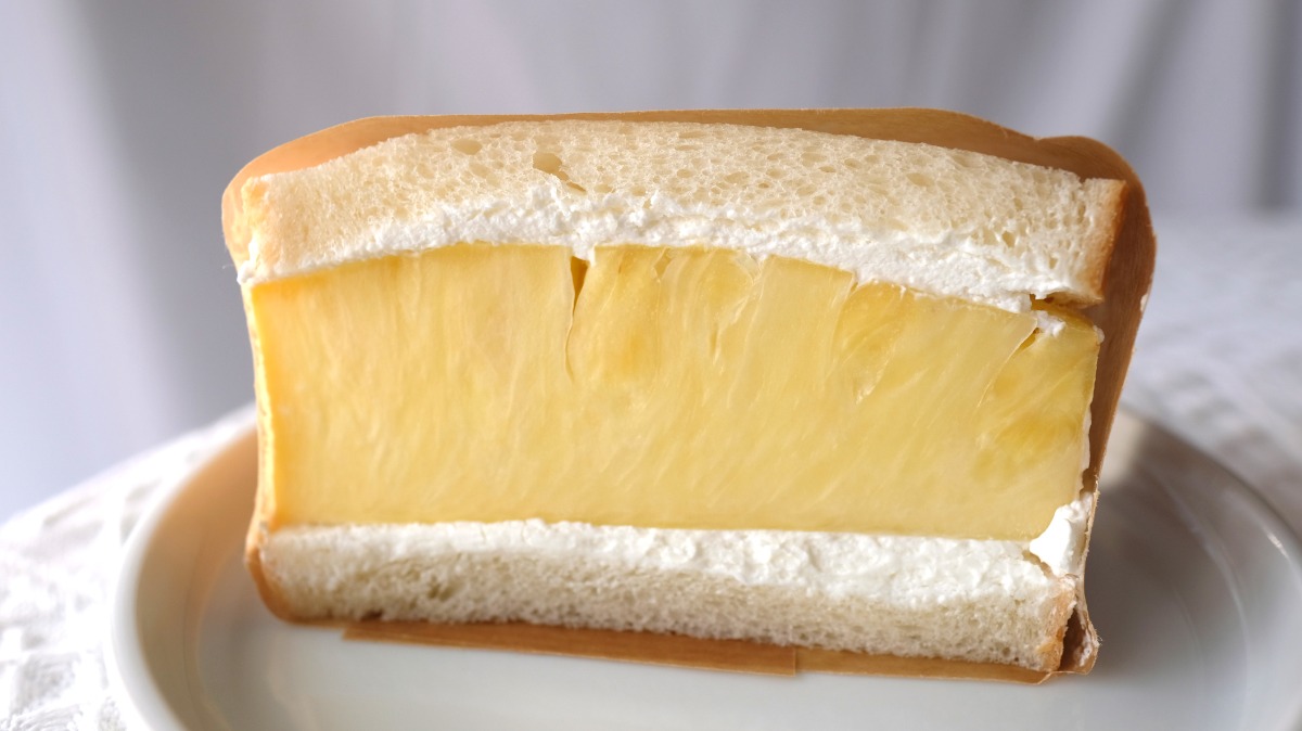 芯まで柔らかいパイナップルを大きめにカットしてサンドした、ジューシーすぎるサンド。インパクトも抜群!