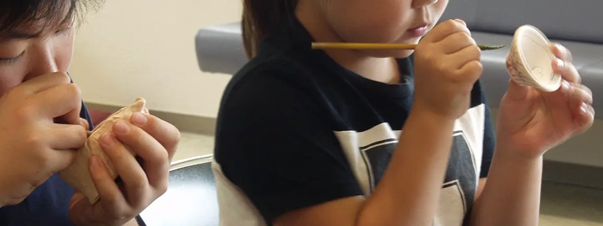 お子さまからご年配の方まで、手軽に陶工気分を楽しめる絵付け体験。
