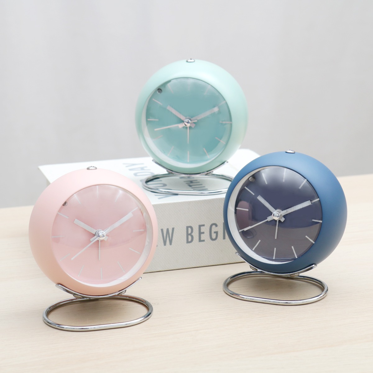 ① くすみカラーとぷっくりした形がかわいい置き時計(メタリック置き時計)