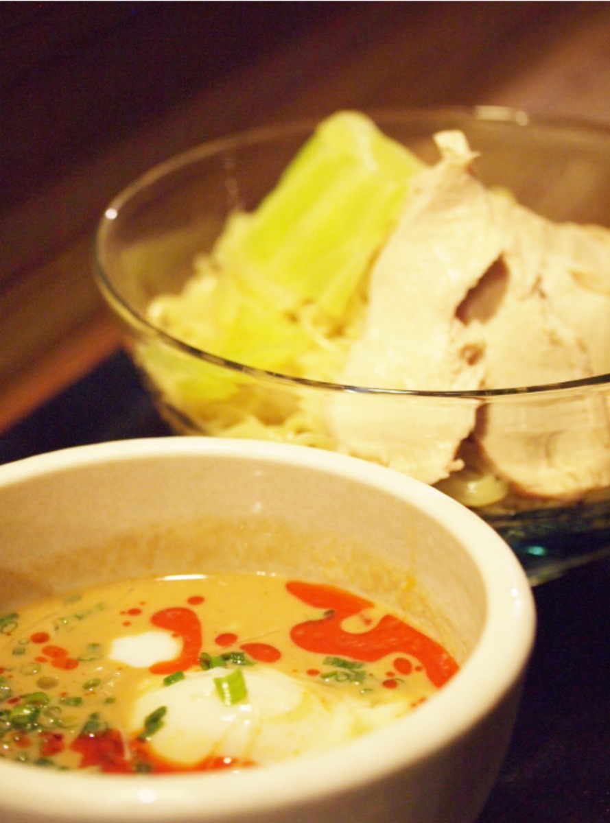 つけ麺は歯ごたえのある太めで、試行錯誤した後に理想の麺が完成したそうです。