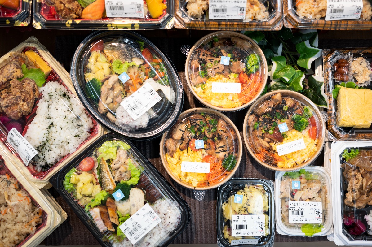 今治産野菜を使ったランチが人気のレストラン「ティア自然食堂」。「自然派の美味しいものを届けたい」という想いが四村ショッパーズの理念とも重なり、2020年に四村ショッパーズの店内に移転オープン。その後「ティアのおかずを家でも手軽に食べたい」との要望が相次ぎ、四村ショッパーズのデリカコーナーでも「ティア自然食堂」の手作りデリを販売するようになった。弁当や惣菜など種類も豊富!(季節によりおかずは替わる)