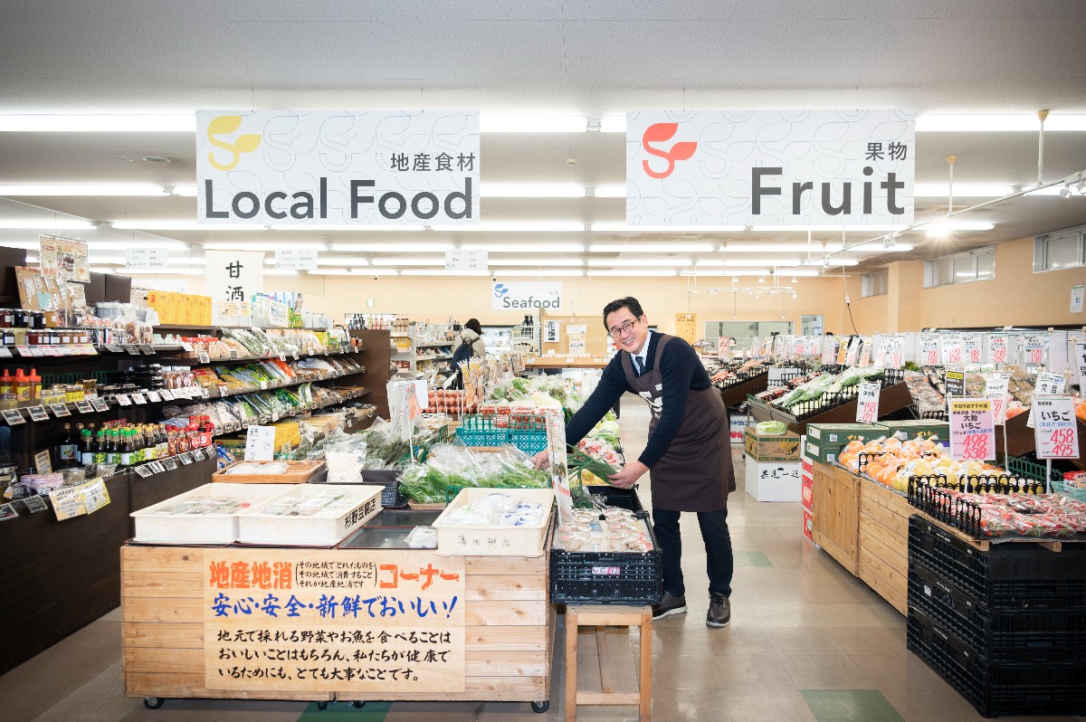 「安心・安全・美味しい」をコンセプトに、7年前に改装した四村(よむら)ショッパーズ。以前から「自然派の商品を置いてほしい」という声が多く寄せられていたことから、「将来は安心、安全な商品に関心を持つお客様が増えていくだろう」と考え、現在では店内で扱う商品のうち4割近くが自然派商品に。青果コーナーで取り扱う野菜や果物も無農薬栽培をしている農家のものを中心に置いており、そのこだわりや品質の高さから、地元・今治はもちろん、松山や西条など遠方からもファンが買いに訪れている。