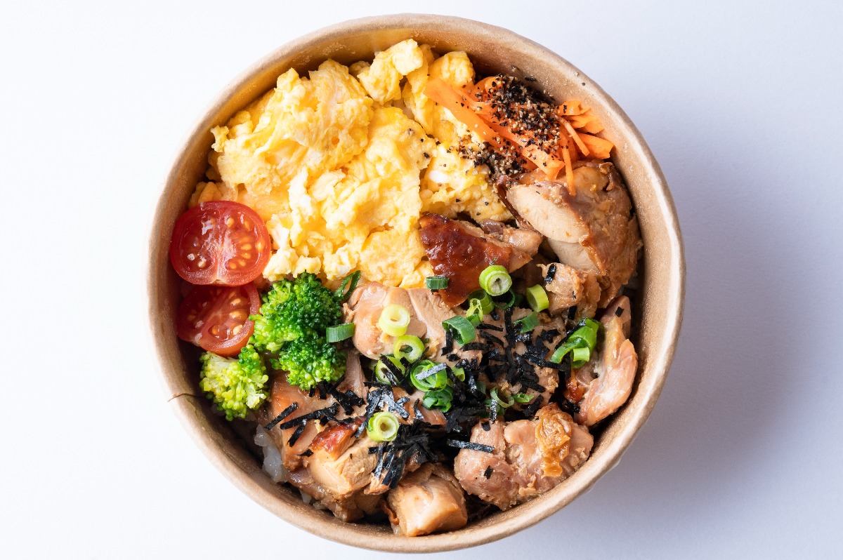 ボリューム感たっぷりの鶏の照り焼き丼。付け合わせの野菜も入っているのでヘルシー。