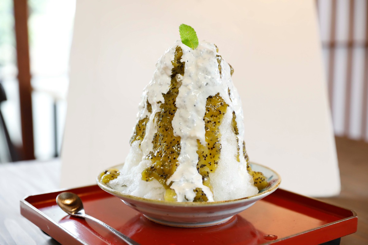 築100年以上の古民家の趣を残し、開放的な空間で緑豊かな庭園を眺めながらかき氷を味わえる「海夏島空」が4月にオープン。フルーツは全て農家から直送したものを使用。人気の「抹茶スペシャル」は、宇治茶の濃厚な味わいで、トッピングの小豆などは自家製。秋から春にかけてランチも提供予定です。
