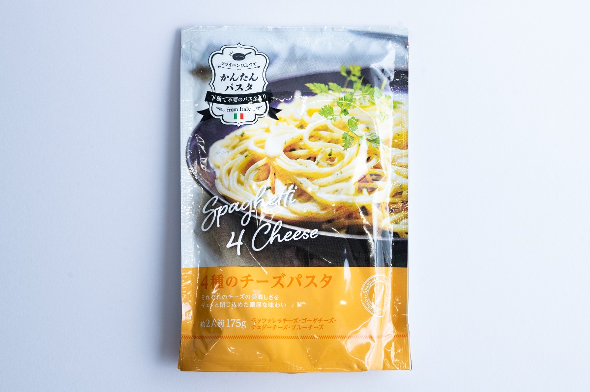 パックの中にパスタとソースが入った「かんたんパスタ」シリーズ。4種のチーズが濃厚に香る!