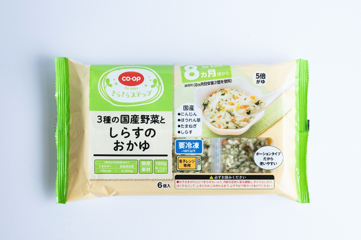 子育て世帯を応援する商品「きらきらステップ」は、5カ月~3歳が対象のコープオリジナル離乳食・幼児食。「子どももうれしい。私もうれしい。“家族”がうれしい」をコンセプトに、ママ&パパの声から生まれた商品だ。安心安全な原料を用い、子どもが食べやすい大きさ・量で作られている。おかずと野菜がセットになった便利な冷凍食材やレトルトなど幅広い品揃え!HPにアレンジレシピ掲載。