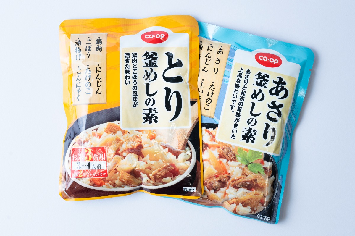 CO・OP 釜めしの素(とり・あさり)(各214円)