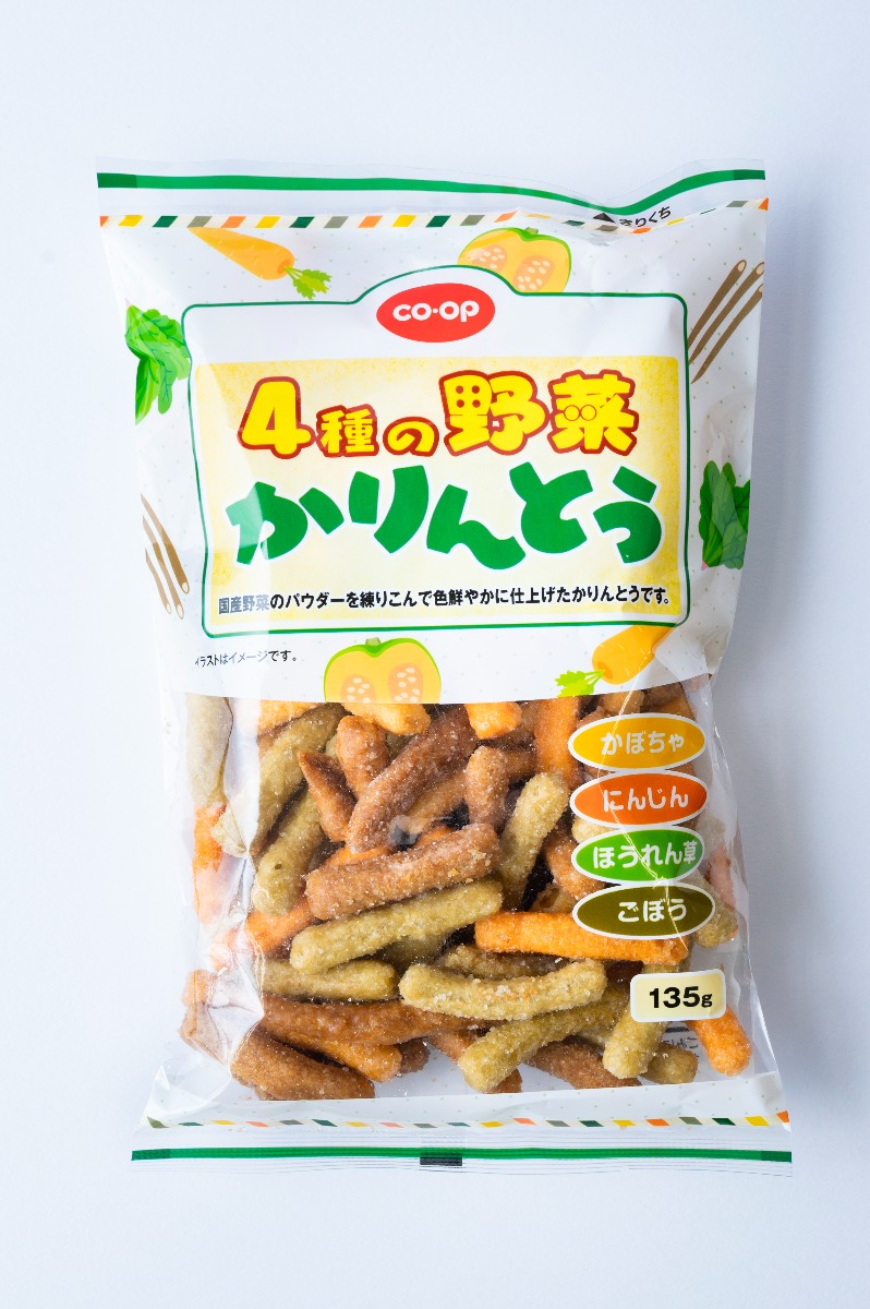 国産野菜のパウダーを練り込んだ4種のかりんとうミックス。3度揚げでサクサク!