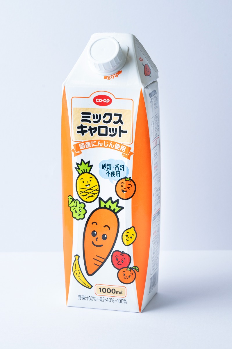 国産にんじん果汁に7種のフルーツをブレンド。砂糖や香料不使用。不動の人気No.1ジュース