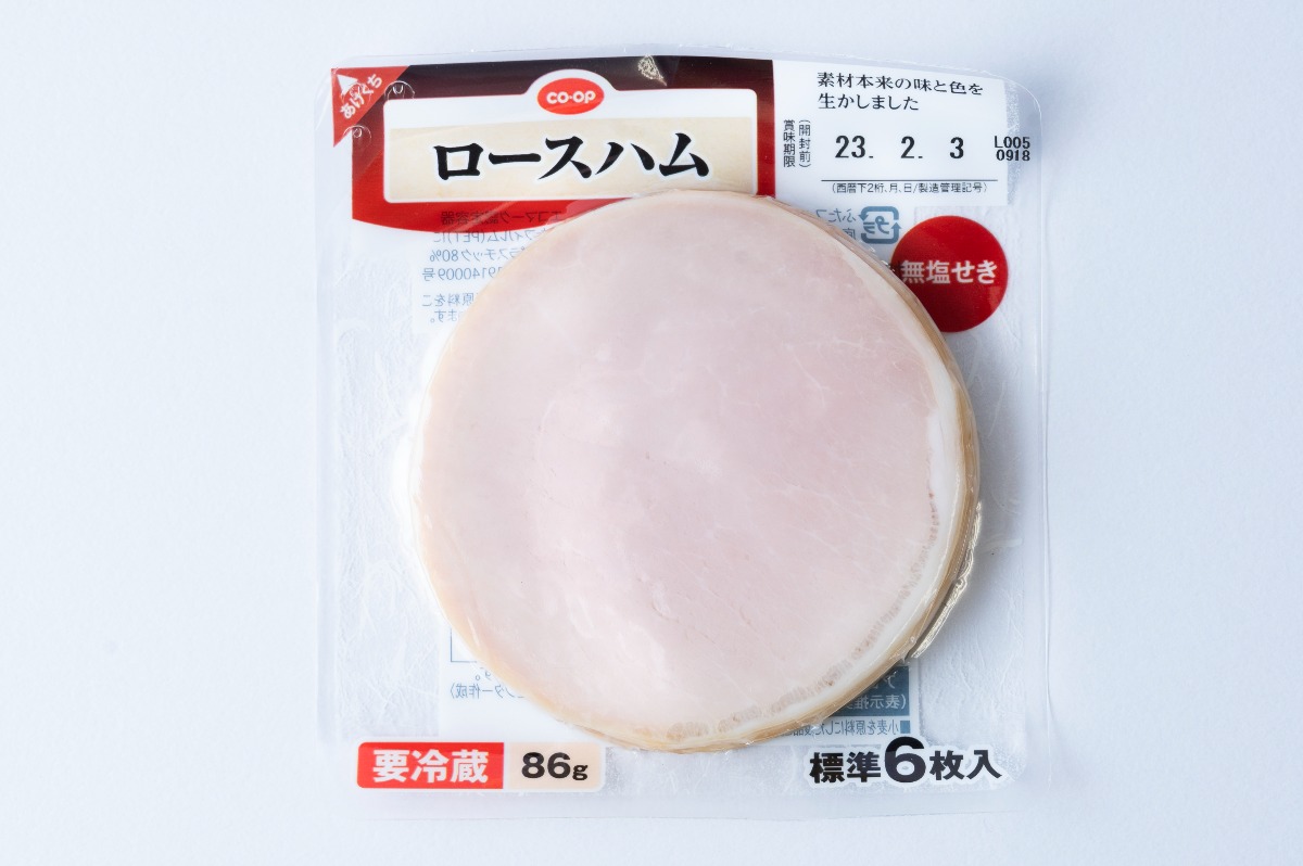 しっとりと仕上げた無塩せきロースハム。肉本来の風味を大切に厚めにスライス!